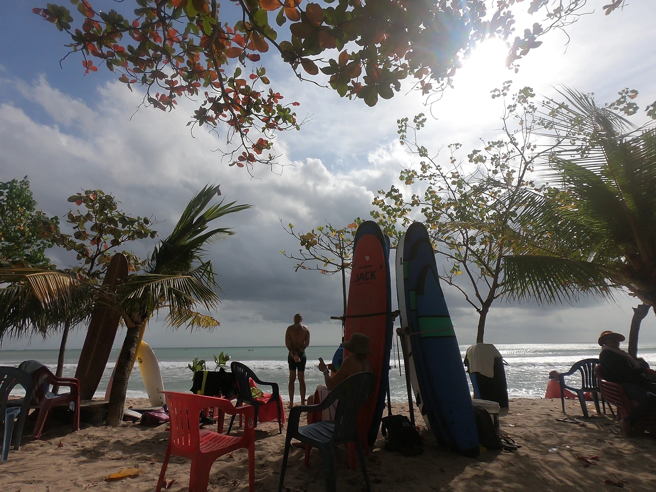 수다를 떨다가 나는 서핑보드 가격 협상하고 왔다고 말했고, 80,000 루피아라며 굉장히 좋은 가격에 협상을 했다고 말했다. 그러자 잼이 "응? 나 여기 친구 있는데 그 친구한테 하면 50,000루피아야. 우리 이따가 하러 갈 건데 너도 같이 갈래? 가고 싶으면 껴도 돼."라고 했다. 하하하... 우물 안 개구리였다. 부끄러움을 조금 느꼈지만 곧장 합류했다. 더 싸지 않은가? 무조건이다. 프랑스, 스페인, 싱가폴, 캐나다에서 온 4명의 외국인 친구들과 함께 서핑을 하러 갔다.