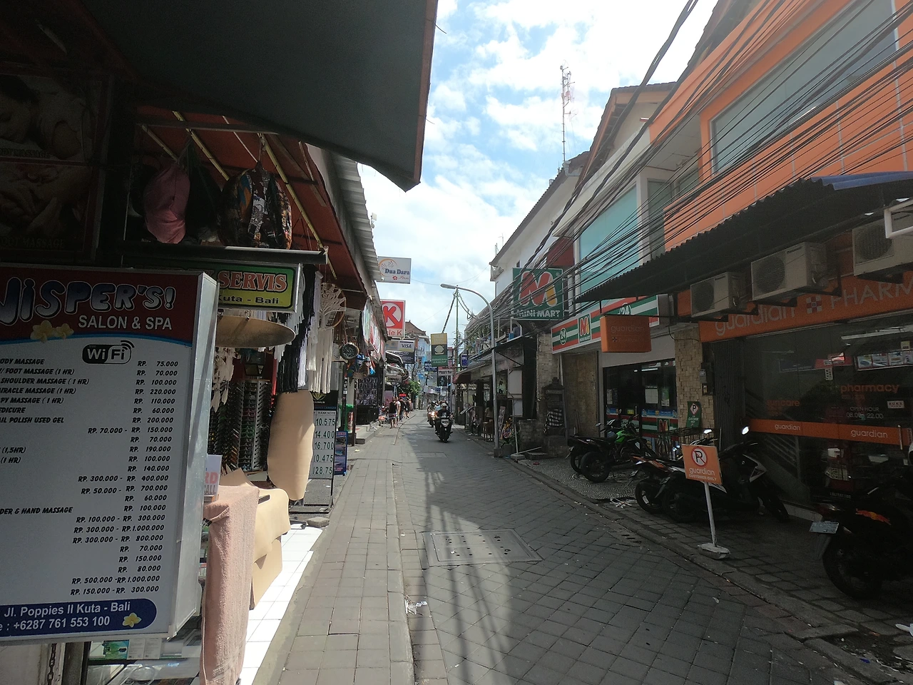 유심을 사러 가기 전에 꾸따 해변을 보고 싶었다. 깜짝 놀랐다. 너무 이뻤다. 푸른 하늘에 긴 해변을 갖고 있었고, 그 라인을 따라 서핑보드 샵이 줄줄이 있었다. 많은 사람들이 이미 서핑을 하고 있었다. 한참을 걸어 다니다 오늘의 첫 목적, 유심을 사러 떠났다.