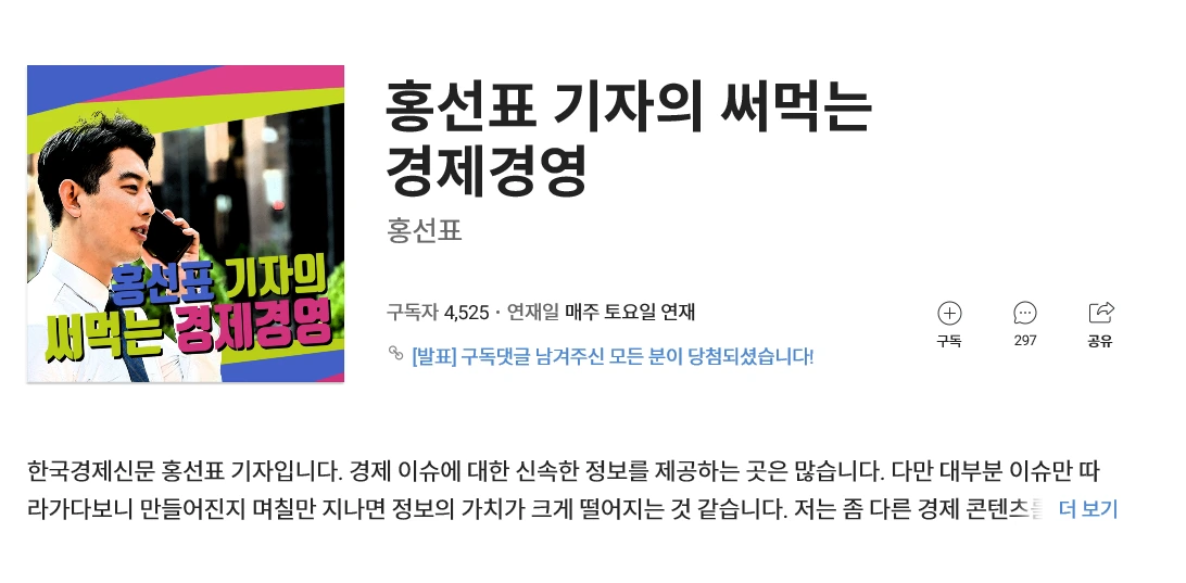 안녕하세요. 홍선표 기자입니다. 평소 제 브런치를 찾아주시는 분들이라면 잘 아시겠지만 저는 주로 경제경영 이슈를 쉽게 설명하는 글이나 국내 플랫폼‧콘텐츠 기업들의 전략에 대해서 분석하는 글을 써왔는데요.