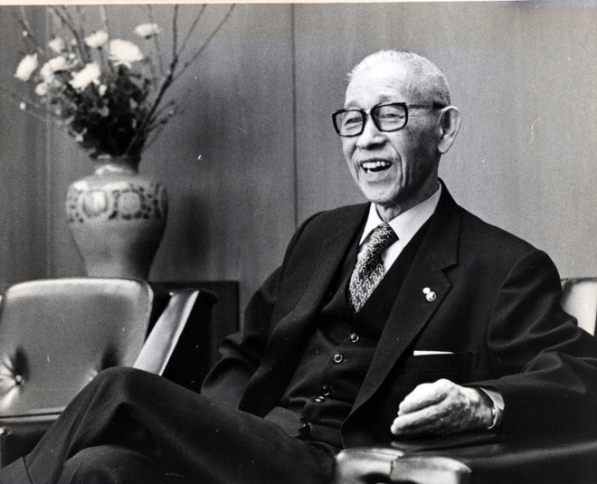 그는 2차 세계대전이 일본의 패전으로 끝난 이후 PHP라는 이름의 사회 운동을 벌이는 데 앞장섰는데요. Peace(평화), Happiness(행복), Prosperity(번영)의 앞글자를 딴 이 캠페인은 경제적인 번영을 통해 평화와 행복을 추구한다는 목표를 갖고 시작된 캠페인이었습니다.
