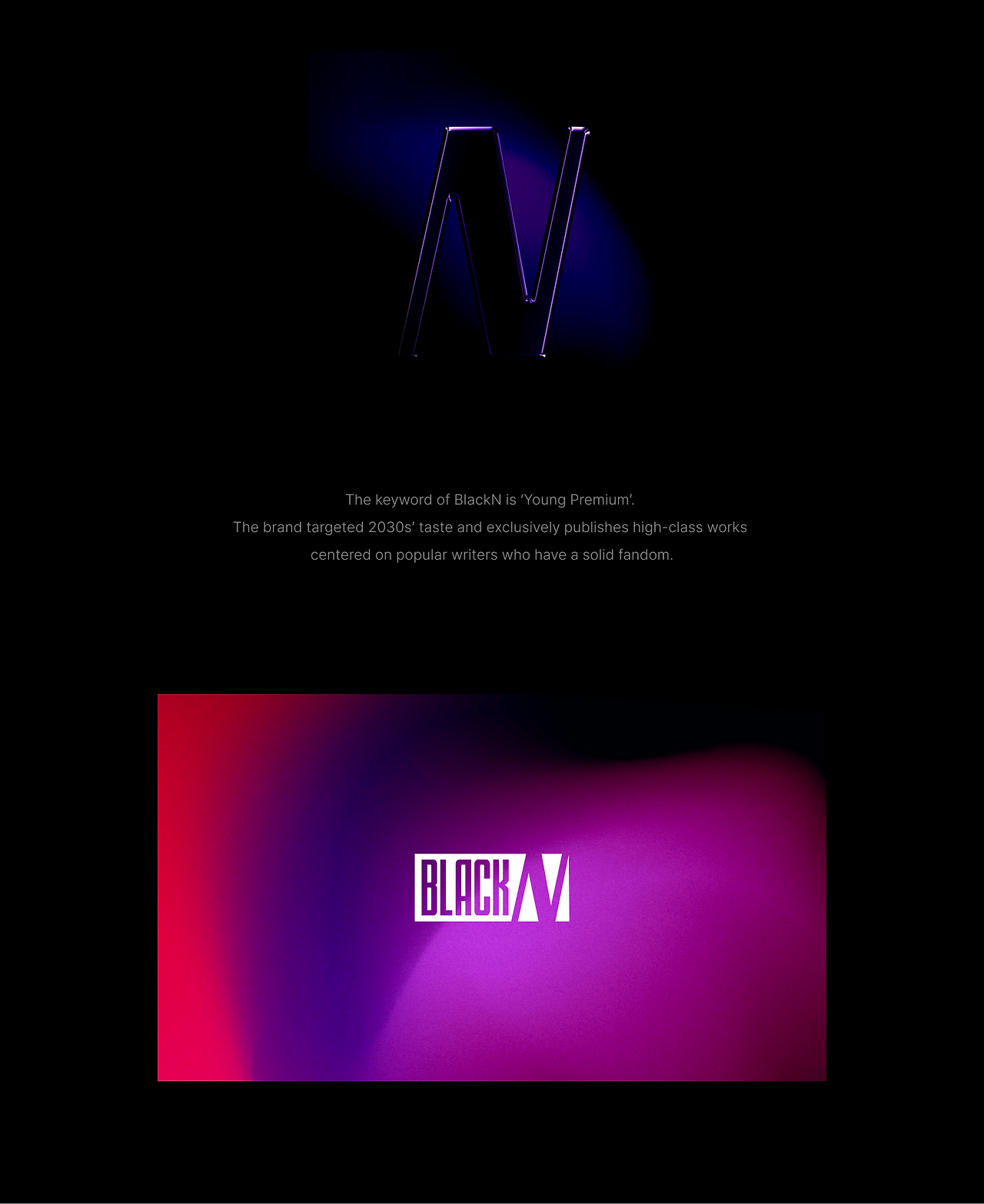 리디 BX(Brand Experience)팀은 블랙엔의 브랜드 의도와 키워드에 맞춰 브랜드 디자인을 진행했다. MZ를 타겟으로 하는 ‘영 프리미엄’ 브랜드인 만큼 고전적인 프리미엄의 느낌보다는 ‘새로운 프리미엄’을 표현하고자 했다.