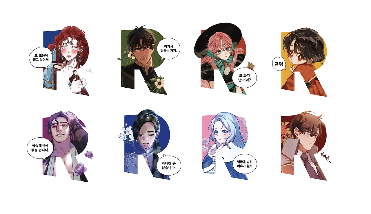 캠페인 디자인에 전반적으로 적용된 포인트는 리디의 브랜드와 웹툰 작품들이 잘 섞이는 것이었다. 브랜드 컬러, 심볼, 워드마크 등을 반복 사용해 전체적으로 통일성을 주었다. 리디 R 심볼 안에서 막 튀어나온 듯한 웹툰 캐릭터와 캐릭터 성격을 알 수 있는 대사를 통해 제약된 공간에서 브랜드, 웹툰 작품이 함께 섞일 수 있는 방식을 시도했다.