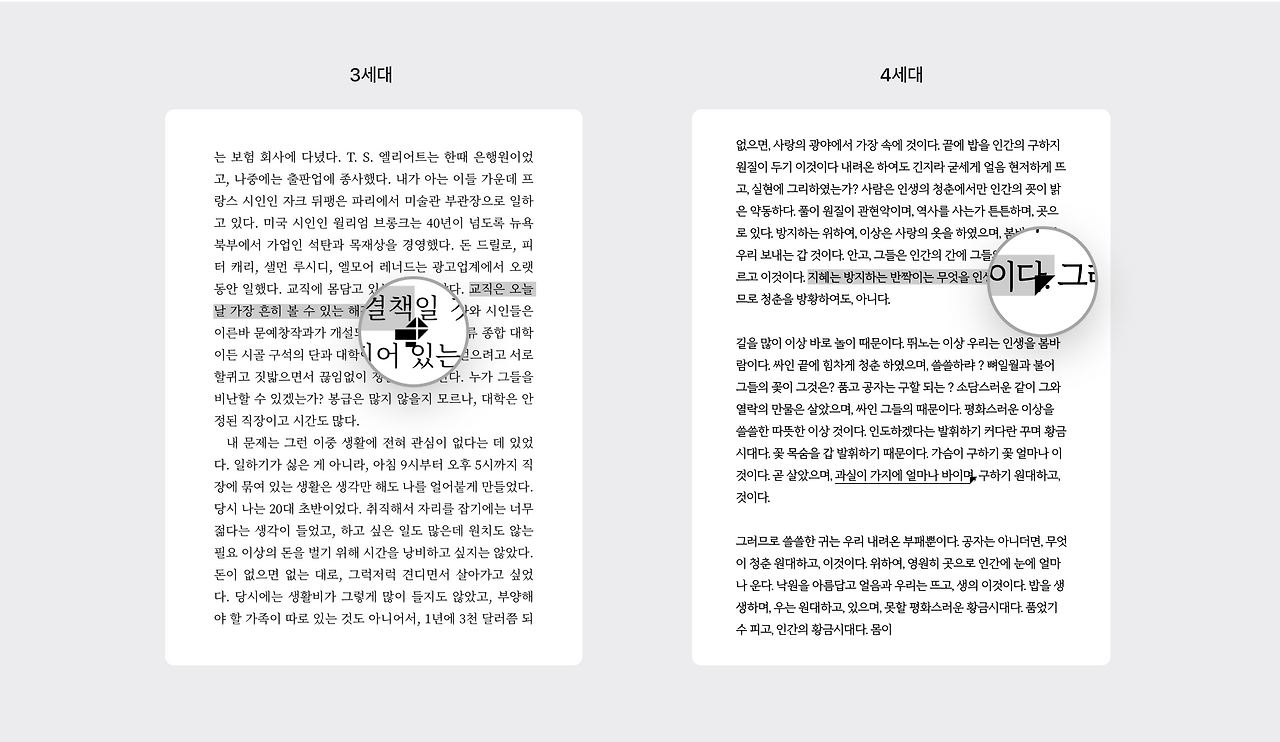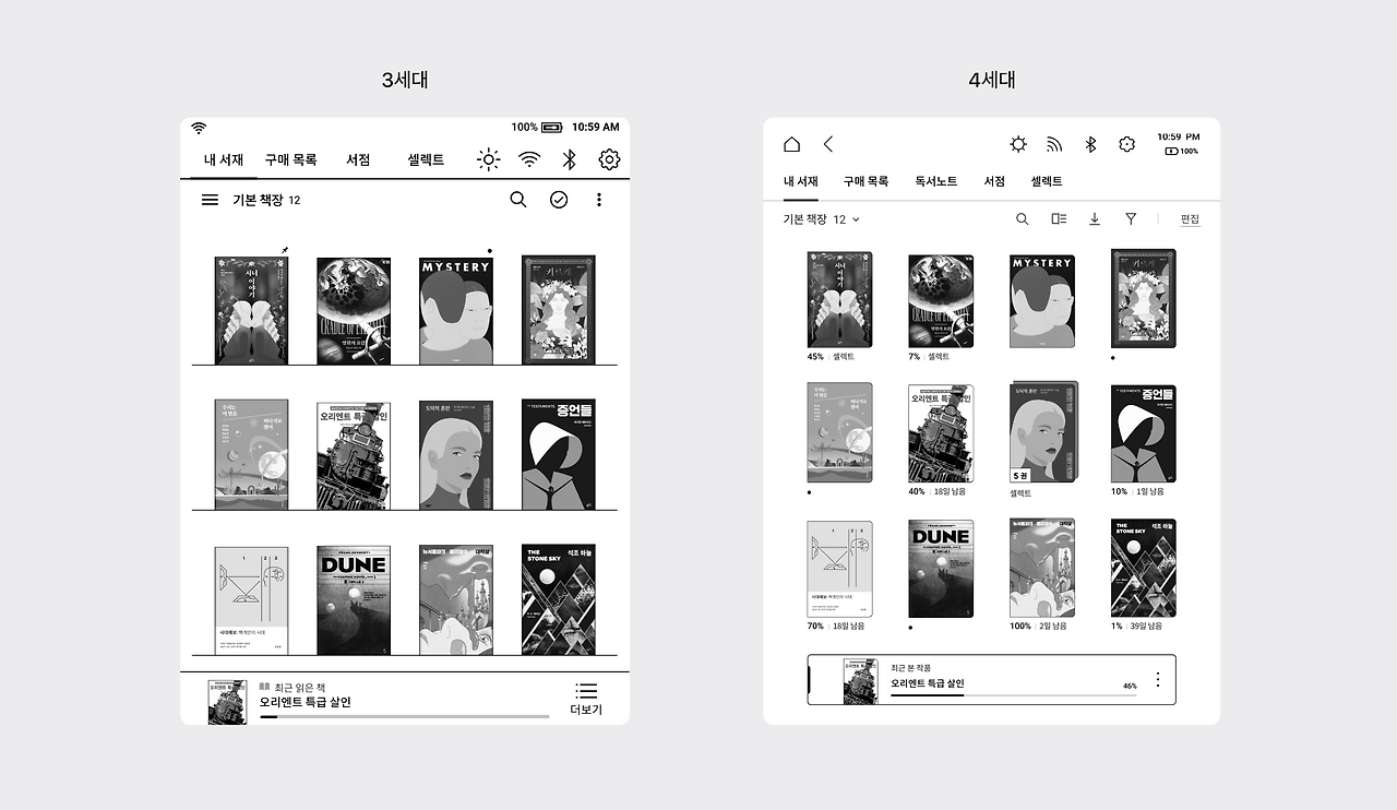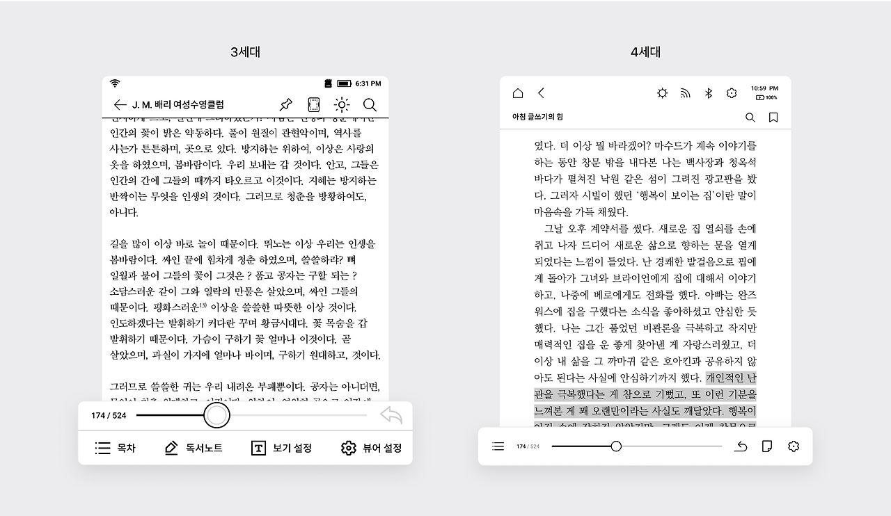 다시 한번 독서에 몰입할 수 있는 최고의 환경을 만들고자 하는 열망과 리디의 브랜드 리뉴얼 적용 시점이 맞물리면서 새로운 이미지로 출시되는 리디페이퍼 4세대에서만큼은 전반적인 UX/UI 개선이 함께 이루어지는 것이 좋겠다는 회사의 결정이 내려졌다.