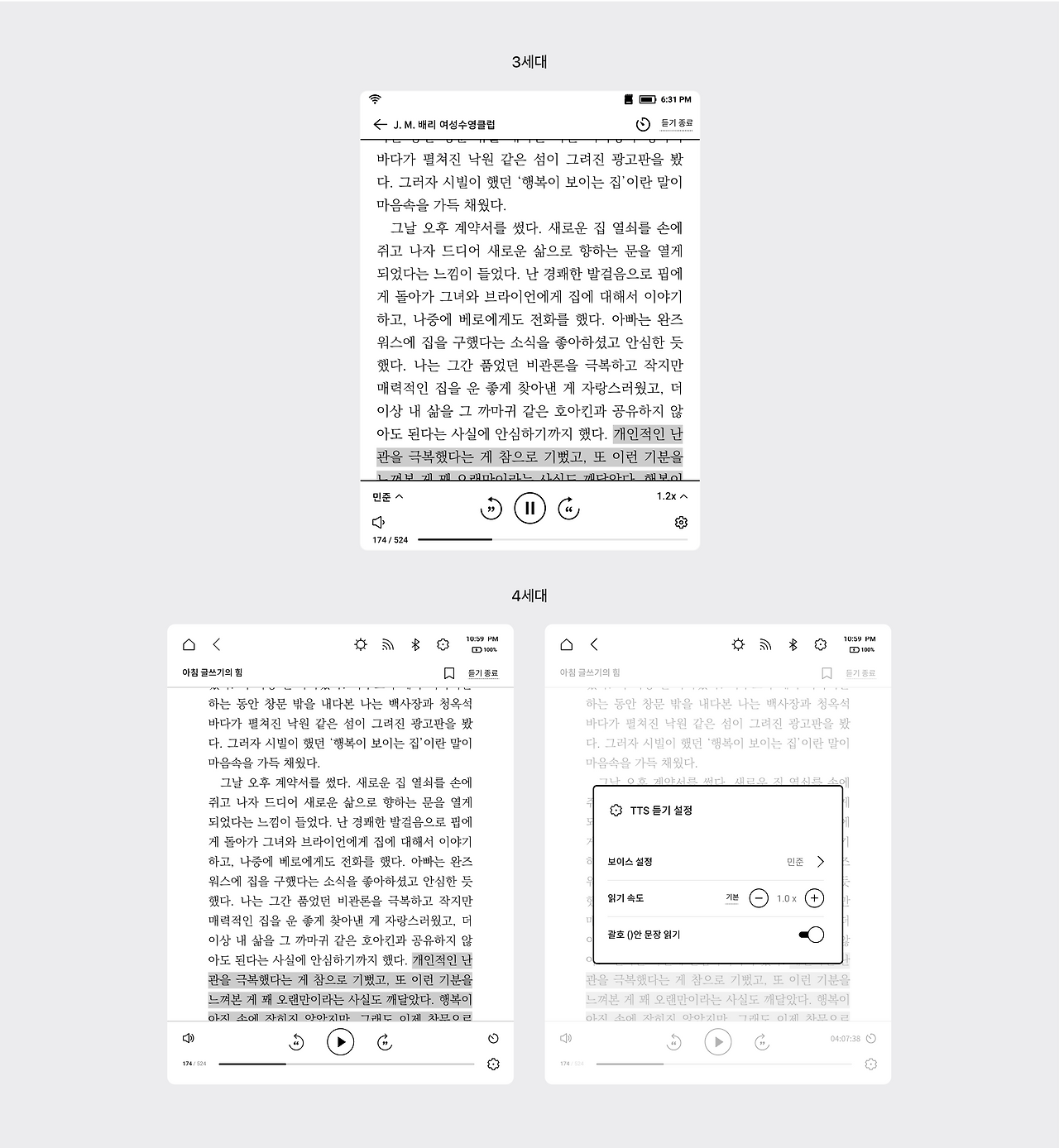 상하로 분산되어 있던 TTS 기능은 아래로 모았다. 타이머를 비롯한 여러 TTS 관련 기능을 한 곳에서 모두 설정할 수 있게 만들고자 했다.