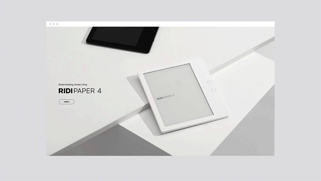 새로운 심볼 적용 건으로 BX팀과 함께 협업하게 되었지만 제품 개발 후 다시 한번 본격적으로 협업할 일이 생겼다. 바로 리디페이퍼 4의 예약 페이지였다. 제품 자체의 퀄리티만큼 제품을 잘 표현하고 설명하는 것 또한 중요하다. 기획 구성, 디자인, 개발의 과정까지 리디페이퍼의 장점이 되는 포인트들을 극대화해 표현할 수 있도록 노력했다. 심혈을 기울여 개발한 버튼에 대한 임팩트 있는 장면이나 처음 선보인 화이트 컬러 제품에 대한 장면, 기기의 전반적인 UX를 설명한 장면들이 리디페이퍼 4의 장점들을 특히 잘 표현했다.