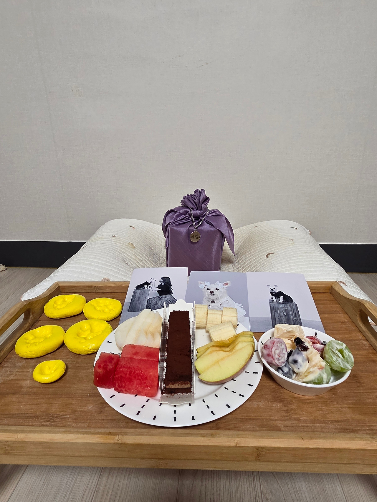 아이가 생전 잘 먹던 사과, 배, 바나나, 수박과 과일샐러드를 주문했다.
