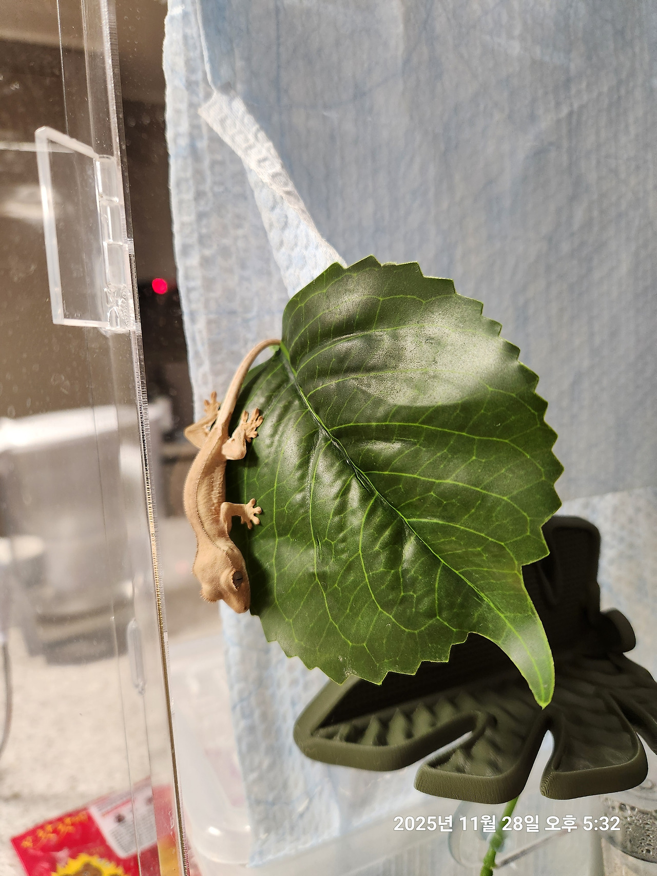 벽에 찰싹! 다섯 개의 발가락이 선명하다.