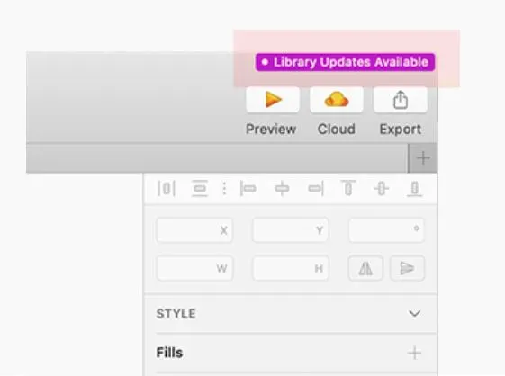 마스터 스케치 문서 오른쪽 상단에 라이브러리 업데이트 알림이 표시됩니다.표시된 메시지를 클릭하고, 동기화시키면 아주 간단하게 라이브러리를 업데이트를 할 수 있습니다.