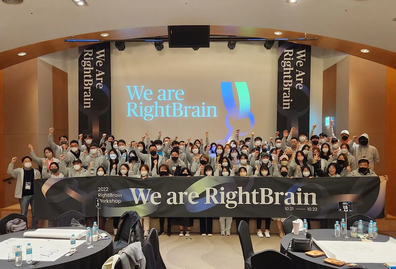 We are RightBrain 파이팅! 을 외치며 전 직원들의 단체사진을 마지막으로 컨벤션홀에서 공식 행사를 마무리했습니다.