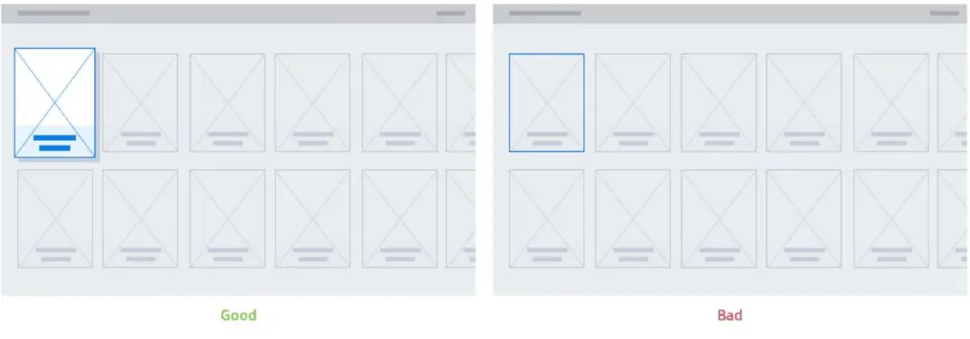 예를 들면 메뉴, 썸네일, 버튼 등의 요소들에 포커스가 갔을 때 전체적인 사이즈를 키우거나 컬러 대비를 강하게 주어 선택을 강조하는 방법이 있습니다.