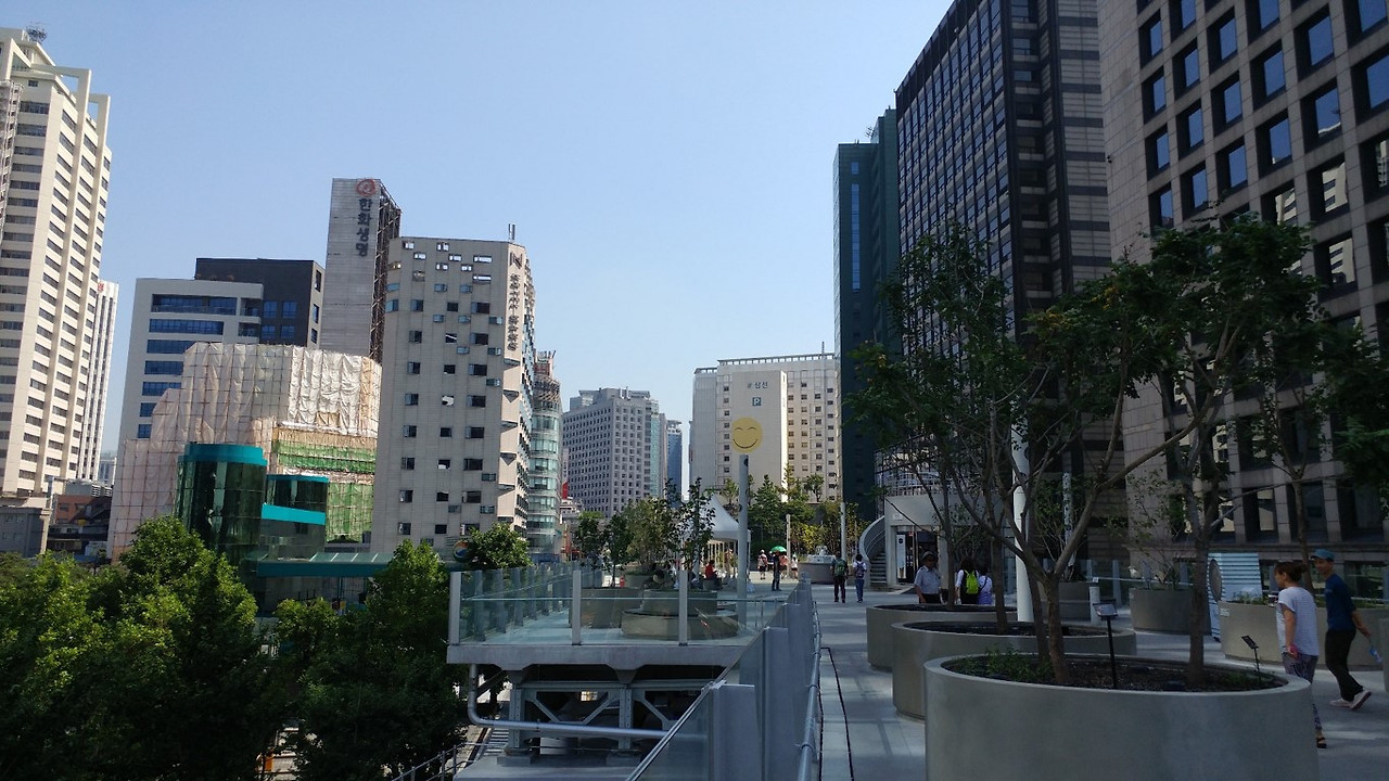 저에게 서울로는 역 주변의 6개 동네를 도보로 연결하는 보행로입니다. 중앙역 서쪽 3개 지역은 상가와 수공업이 일부 들어선 낙후된 주택지이고, 동쪽 3개 지역은 고층 빌딩이 들어선 상업 지역입니다.