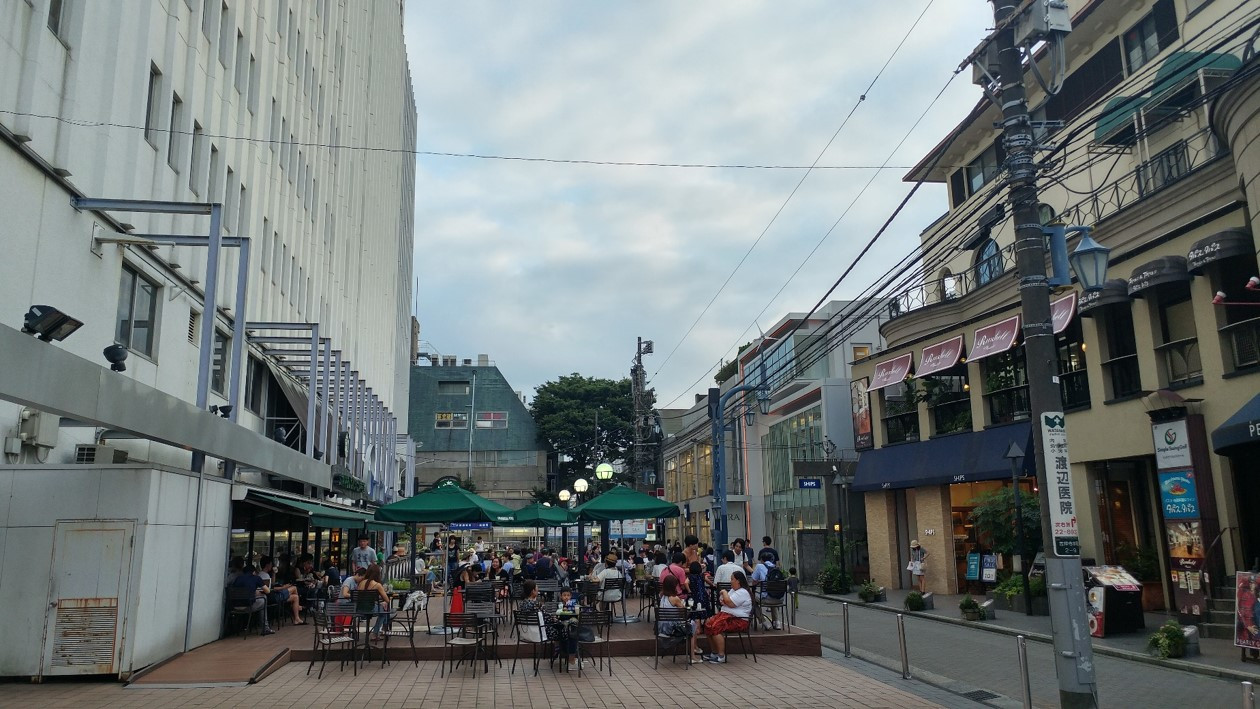 한국 백화점이라면 딱 주차장이 들어가면 좋을 공간입니다. 그런데 도큐백화점은 이곳에 바로 옆 골목길에 스며들어가는 카페 공간을 만들었습니다. 백화점과 골목길이 공간 디자인으로 자연스럽게 공존하는 모습입니다.