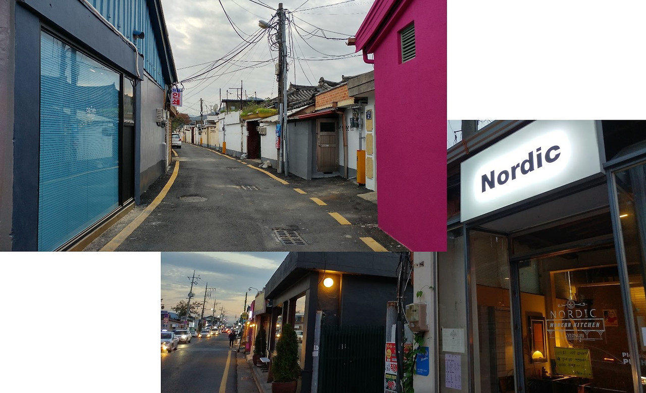 황리단길이 뜨기 시작한 시점은 2016년 여름입니다. 그 길 입구에 노르딕이라는 브런치 가게가 문을 열면서 황리단길이 시작됐습니다. 제가 황리단길의 부상을 인지한 시점은 2016년 10월 말, 이때 이 사진을 찍었습니다. 불과 일 년 만에 황리단길에 가게들이 꽉 찼습니다.