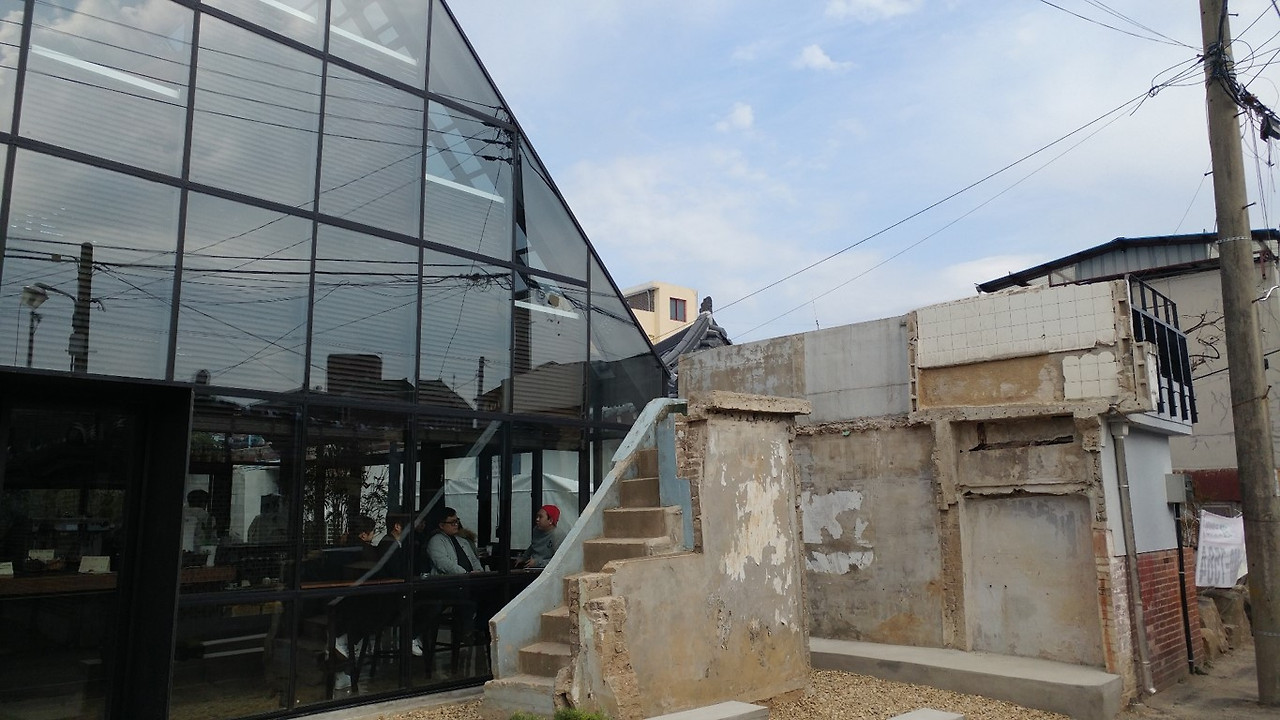 흥미롭게도 카페 ‘콩집’과 음식점 ‘청미장’이 입점한 2개의 건물로 구성된 쿡폴리는 한 사람의 작품이 아닙니다. v포머티브건축 고영성 소장이 광주시가 확보한 공폐가를 재생 건물로 설계했고, 서울 이태원 경리단길에서 ‘장진우거리’를 조성한 장진우 대표가 쿡폴리의 콘셉트와 콘텐츠를 제공했습니다. 실제 카페와 식당을 운영하는 기관은 지역 청년창업 협동조합입니다.