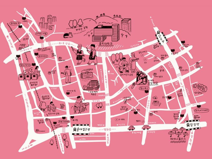 많은 것이 그렇듯 독립서점도 홍대가 전국으로 수출한 도시문화 상품입니다. 독립서점 중심지답게 많은 독립서점이 홍대 지역에 밀집돼 있습니다. 지도만 봐도 그 자원이 풍부합니다. 하루 종일 다녀도 다 보지 못할 것 같습니다.