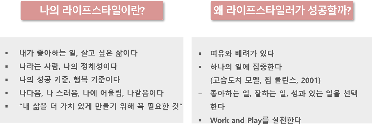 자신이 추구하는 가치관을 실천해 나와 사회의 발전에 기여하는 라이프스타일러들은 일을 통해 삶을 만들어갑니다. 일이 곧 삶이고 삶이 일인 것이죠. 가슴 뛰는 일에 매진해 내 삶과 공동체의 건강한 발전을 주도하는 라이프스타일러. 이들의 성공은 어쩌면 당연한 일입니다.