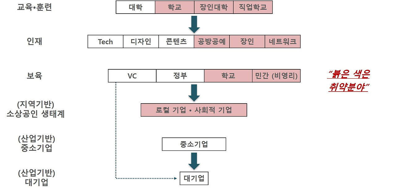 스타트업, 예술가, 소상공인이 활발하게 창업하는 생태계를 원한다면, 인재 양성, 창업 보육, 창업 지원 전 단계에서 정부가 새로운 방식으로 창업생태계를 구축해야 합니다.