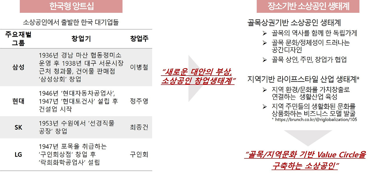 오늘은 장소 생태계 중 골목상권 생태계의 구축을 제안합니다.