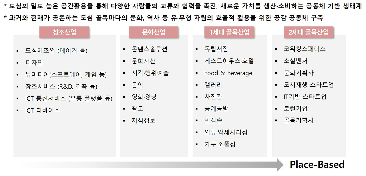 문화산업, 창조산업이 젊은이들이 좋아하는 골목산업을 따라가다 보니, 골목산업이 집중된 다운타운이 새로운 도시산업 생태계로 변신하고 있습니다.
