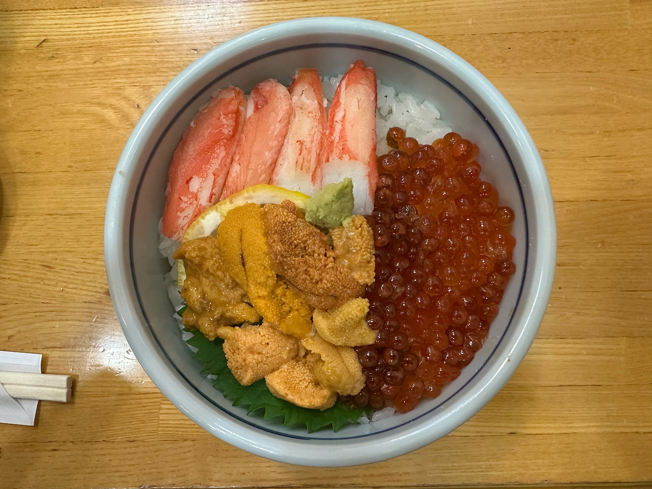 고류카쿠 부근의 이자카야에서는 4만 원 정도의 합리적인 가격으로 수준 높은 갓포 요리를 즐길 수 있다. 특히 차갑게 서브되는 게살과 밤밥 같은 세심한 요리는 하코다테 요식업계의 높은 수준을 보여준다. 마지막 날 아침에 들른 자유시장에서는 하코다테의 또 다른 특산물인 이쿠라로 만든 덮밥을 맛보았다. 이처럼 하코다테는 홋카이도의 식재료와 일본 전통 요리의 조화를 통해 독특한 식문화를 형성하고 있다.