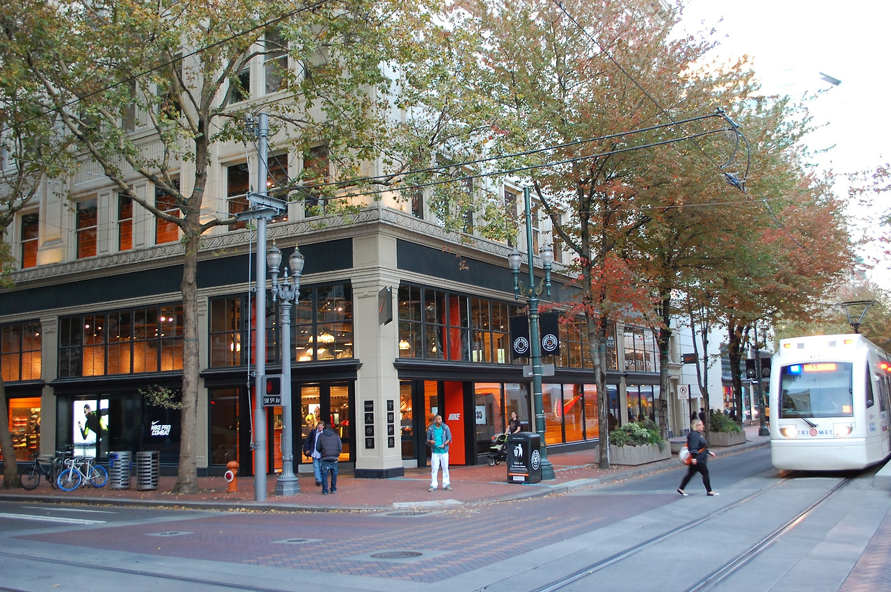 포틀랜드의 나이키 타운은 도시 중심지인 사우스웨스트 5번가에 있다. 나이키 타운 입구에 들어서는 순간 이 매장의 규모, 디자인, 공간에 압도당한다. 상점 구석구석에는 코비 브라이언트, 르브론 제임스 등 나이키를 대표하는 스타 농구 선수들의 사진이 자리 잡고 있다.