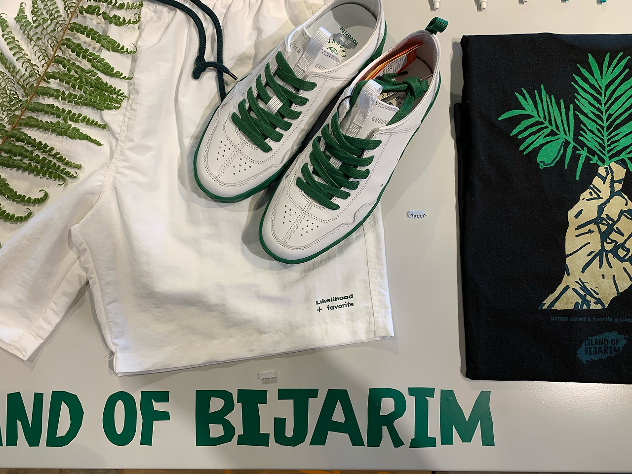 두 번째가 '멀티 로컬' 모델이다. 기획과 판매는 플레이스캠프 편집숍 페이보릿, 스니커스는 연희동 브랜드 마더그라운드, 의류는 제주 브랜드 라이클리후드가 분업한다. 의류는 서울에서, 신발은 부산에서 생산된다. 전부 계산하면, 제주 성산(기획과 판매), 제주시(의류 디자인), 서울 연희동(스니커스 디자인), 부산 어딘가 (신발 제조), 서울 어딘가(의류 제조) 등 총 5개 로컬이 참여하는 브랜드다.