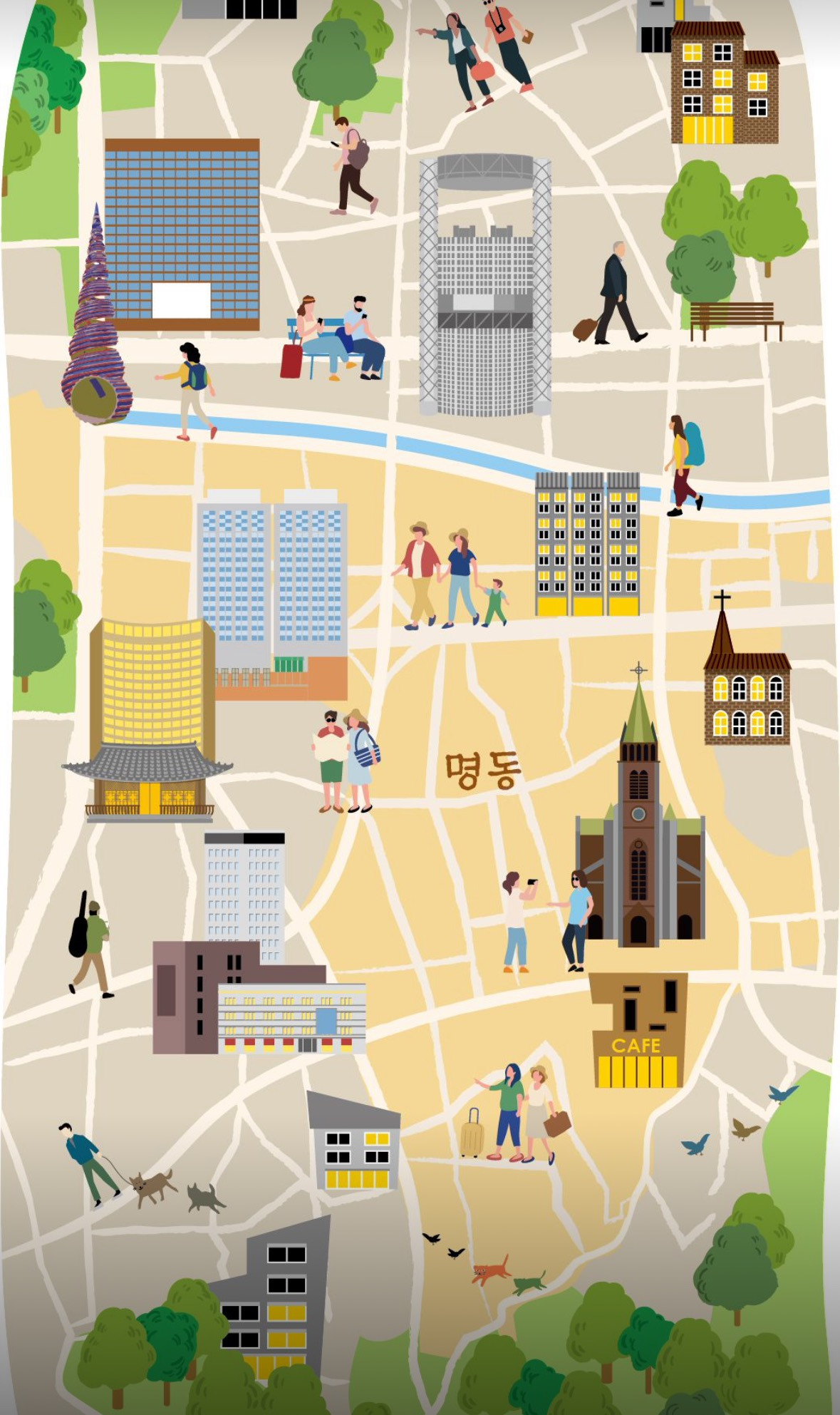 그럼에도 불구하고 명동 상권은 오랜 침체를 겪어왔다. 코로나19 이전부터 시작된 공실률 증가와 매출 감소는 팬데믹을 거치며 더욱 심화되었다. 2021년 나이키 서울 명동, 2022년 애플스토어 명동 오픈에 이어, 2022년 하반기부터 외국인 관광객 유입이 본격화되면서 2023년 들어 뚜렷한 회복세를 보이고 있다. 하지만 아직 안심할 단계는 아니다. 외국인이 아닌 서울 시민이 찾는 프리미어 상권의 지위를 회복해야 온전히 부활했다 할 수 있다.