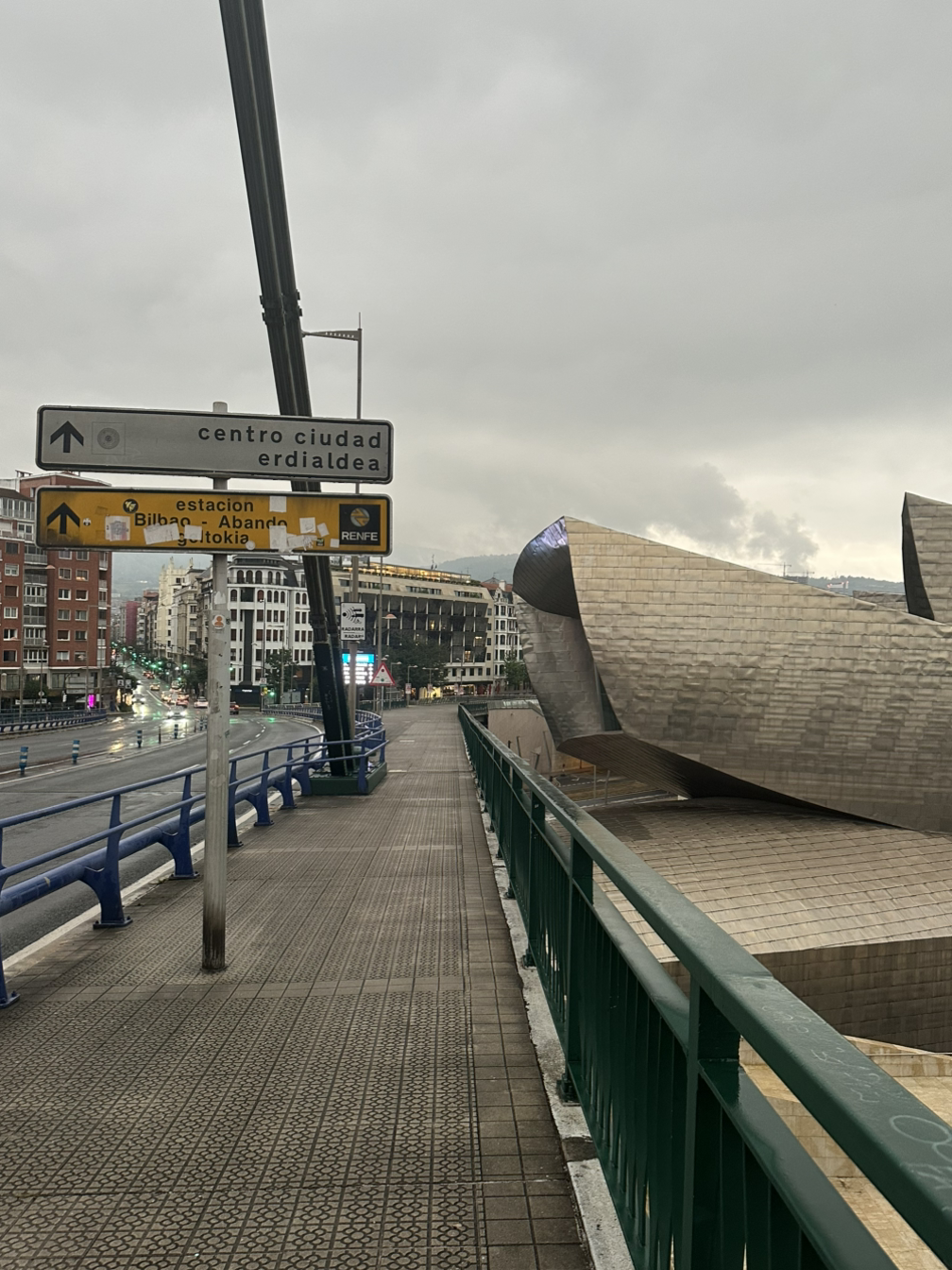 미술관 옆의 우아한 수비수리 다리는 구겐하임과 같은 해인 1997년에 완공되었지만, 이는 구겐하임을 위한 것이라기보다는 네르비온 강을 사이에 둔 신도심과 구도심을 연결하는 기본적인 도시 기능이었다. 페드로 아루페 보행교 역시 2004년에 완공되어 구겐하임보다 7년이나 늦었고, 실제로는 대학 캠퍼스와 대학 도서관을 연결하는 인프라에 가깝다.