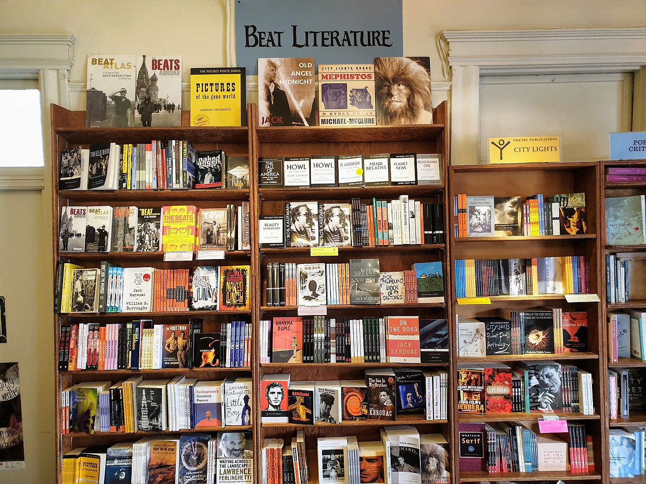 비트 문학의 중심지. 샌프란시스코 카운터 컬처의 중심지는 North Beach-The Haight-The Mission으로 이동한다. 히피가 하이트에 모이기 전인 1950년대 샌프란시스크 보헤미안 문화의 중심지는 이탈리안 이민자 로렌스 펠링게티가 창업한 노스비치 지역의 독립서점 City Lights Books다. 역사 때문인지 이 서점은 비트 문학 작가의 책으로 채워져 있다.