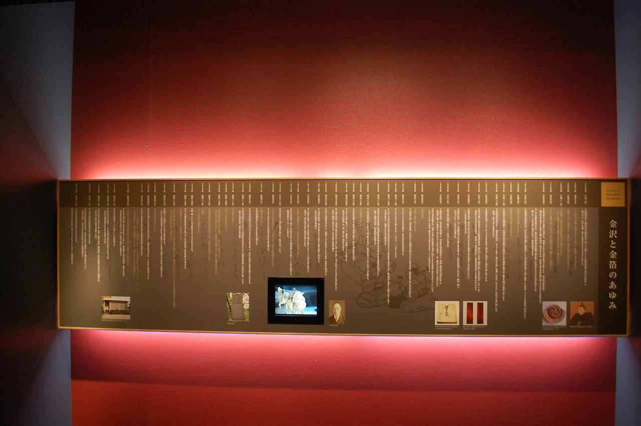 가나자와에는 가타니산교처럼 오랜 역사를 가진 금박 제조업체가 많다. 일본 전체 금박 생산량의 99퍼센트 이상이 가나자와에서 생산된다. 여기서 생산된 금박은 다른 지역 금박보다 월등하게 품질이 좋기로 정평이 나 있다. 고온다습한 여름, 좀처럼 영하로 내려가지 않으면서도 눈이 많이 내리는 겨울, 1300년 전통을 지닌 야시미로 온천 등이 보증하는 좋은 수질이 가나자와를 일본 금박 제조의 중심지로 만들었다.