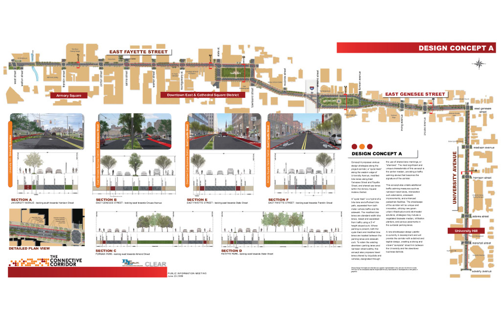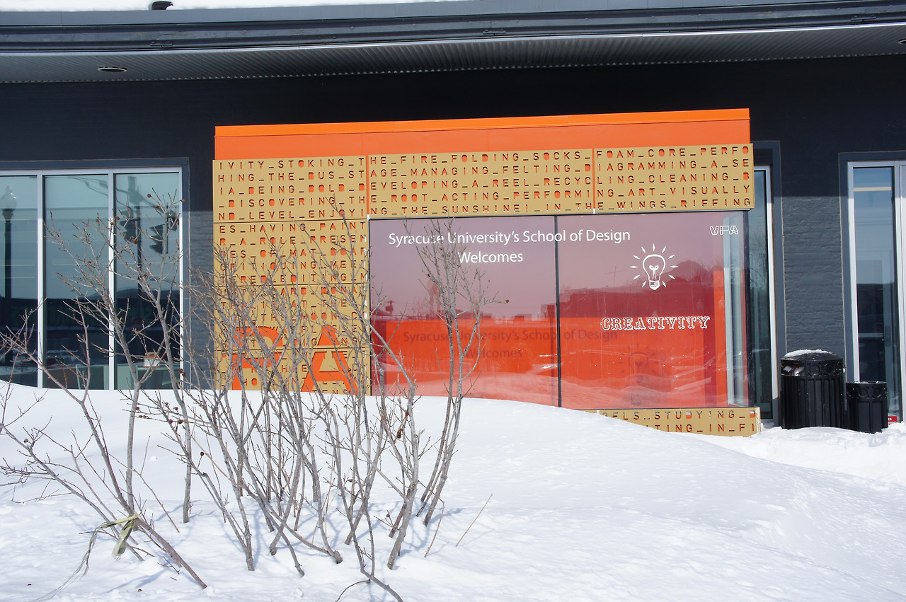 시라큐스대학은 2005년 첫 사업으로 디자인대학을 이전했다. 새로운 장소는 다운타운 서쪽 끝에 있는 창고를 매입해 재건축한 건물이었다. 낙후된 도심 건물의 재생과 거리 정비가 연결통로 프로젝트의 중심 사업이기 때문에 이 사업을 추진할 디자인대학을 현장 가까이로 옮긴 것이다.