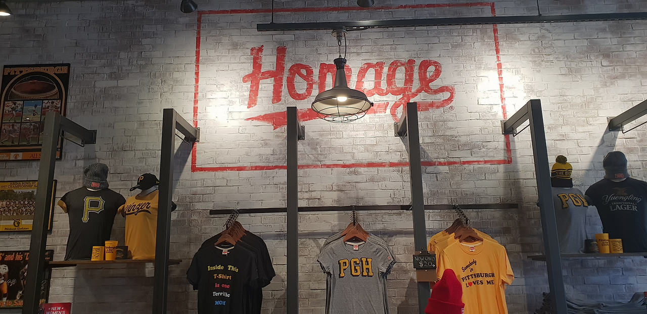 Homage. 피츠버그 East Liberty 소재 지역문화 브랜드 Homage 매장입니다. 지역 장인 제품과 디자인을 편집하는 일본 기업과 달리, 오하이오주 신시내티에 본사를 둔 이 기업은 지역 스포츠팀, 음악, 대중문화를 대표하는 상징적 이미지를 티셔츠로 디자인하는 레트로 티셔츠 제작회사입니다. 피츠버그 티셔츠에 사용된 디자인은 피츠버그 프로 스포츠팀, 피츠버그대학 스포츠팀, 피츠버그 도시 심벌입니다. 현재 쓰는 로고가 아니고 과거에 인기 있던 디자인을 다시 복원한 것이 이 기업의 차별성입니다. 지역문화를 티셔츠를 통해 (미국식으로 미국 시장에 맞게) 재창조한 이 기업, 지역과 지역 라이프스타일을 살리는 기업입니다. 현재 미국 13개 도시에 진출해 있고 앞으로도 매장과 도시를 늘릴 계획이라고 합니다. 지역 전통과 문화에 경의를 표한다는 의미로 Homage라는 이름을 사용한다고 합니다. 우리가 경의를 표해야 하는 기업인 것 같습니다! P.S. 미국 전역에서 목격할 수 있는 Made in the United States 사인이 보이시죠? 우리나라도 하루빨리 지역중심 생산문화를 강화해야 합니다.