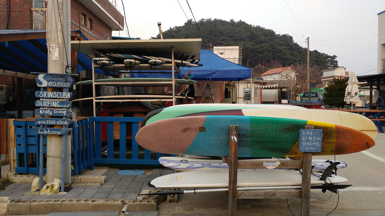죽도해변은 해마다 늘어나는 서퍼들과 그들을 위한 숙박시설, 상업시설이 어우러져 하나의 공동체를 이룬다. 사람이 모여 살면서 자연스럽게 서핑마을이 형성됐다. 예상대로 내가 방문한 죽도해변의 골목길은 이미 서퍼들을 위한 시설들이 즐비한 서퍼거리로 변신해 있었다.
