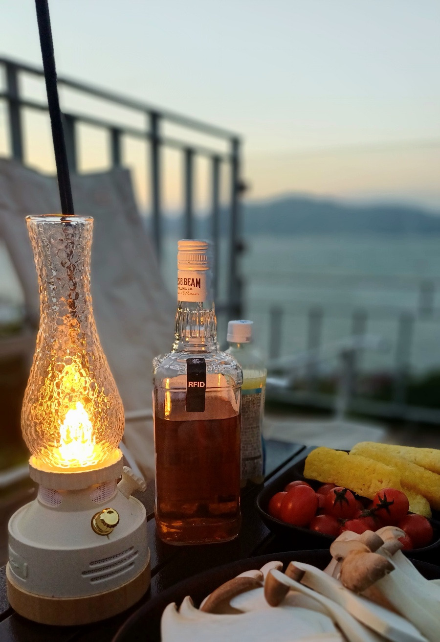 진한 보랏빛으로 하늘이 물들기 시작하면 램프를 하나 둘 걸어준다. 준비해 온 식자재들을 이용하여 요리를 해 먹는다. 집처럼 양념을 완벽하게 할 수 없고, 부족한 도구들 때문에 대충 만들어 먹지만, 그 맛이 또 꿀맛이다.