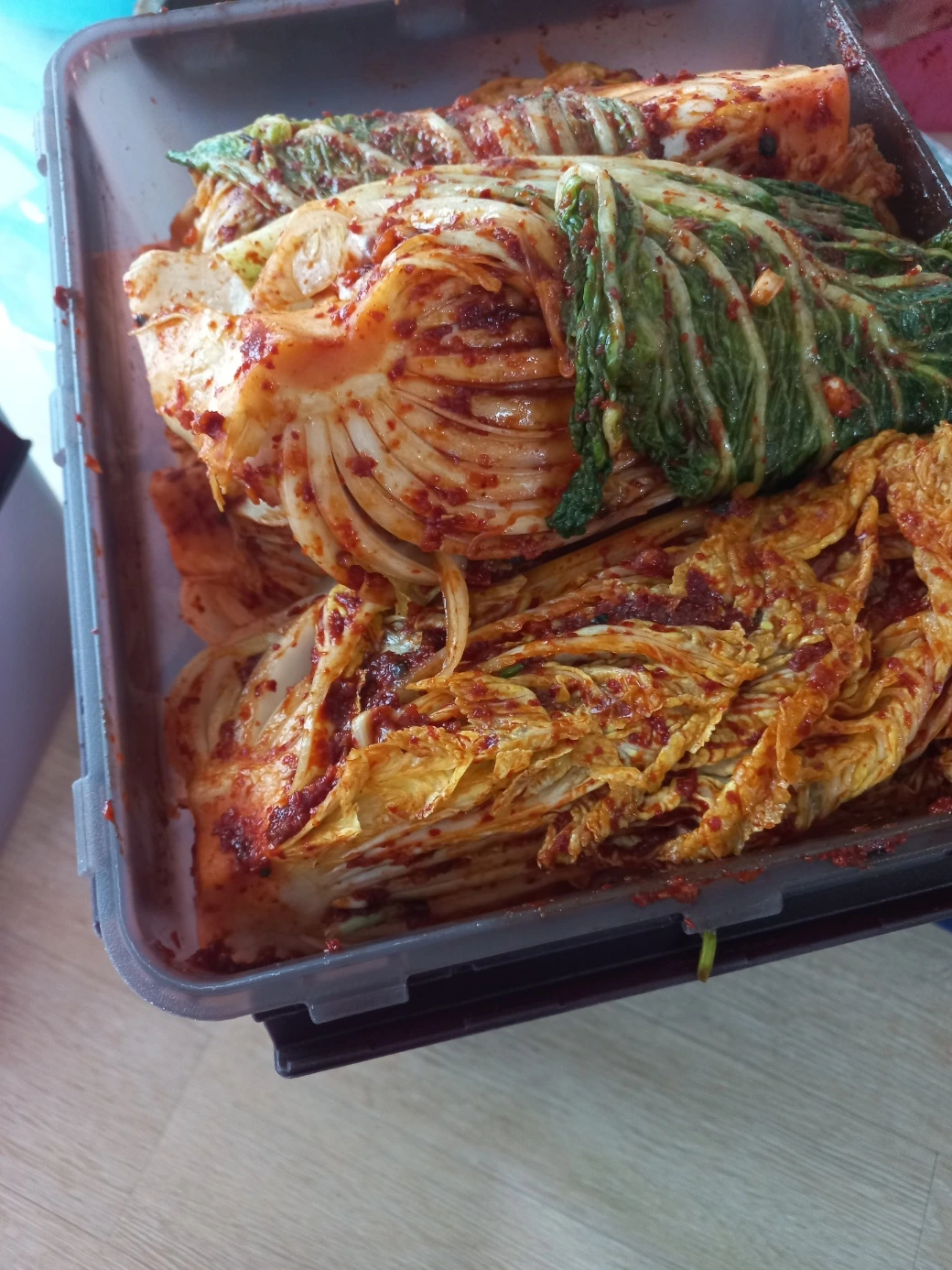 할머니가 같은 아파트의 아래층에 사시는데 우리 집으로 올라오셨다. 물론 나도 이번에는 무거운 것도 들고 옮기고 김치를 치대는 걸 처음 해봤다.