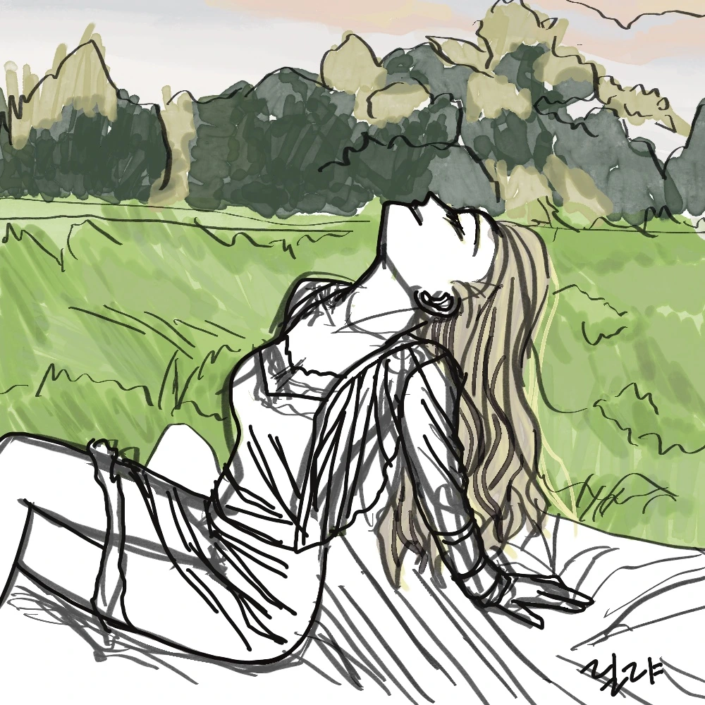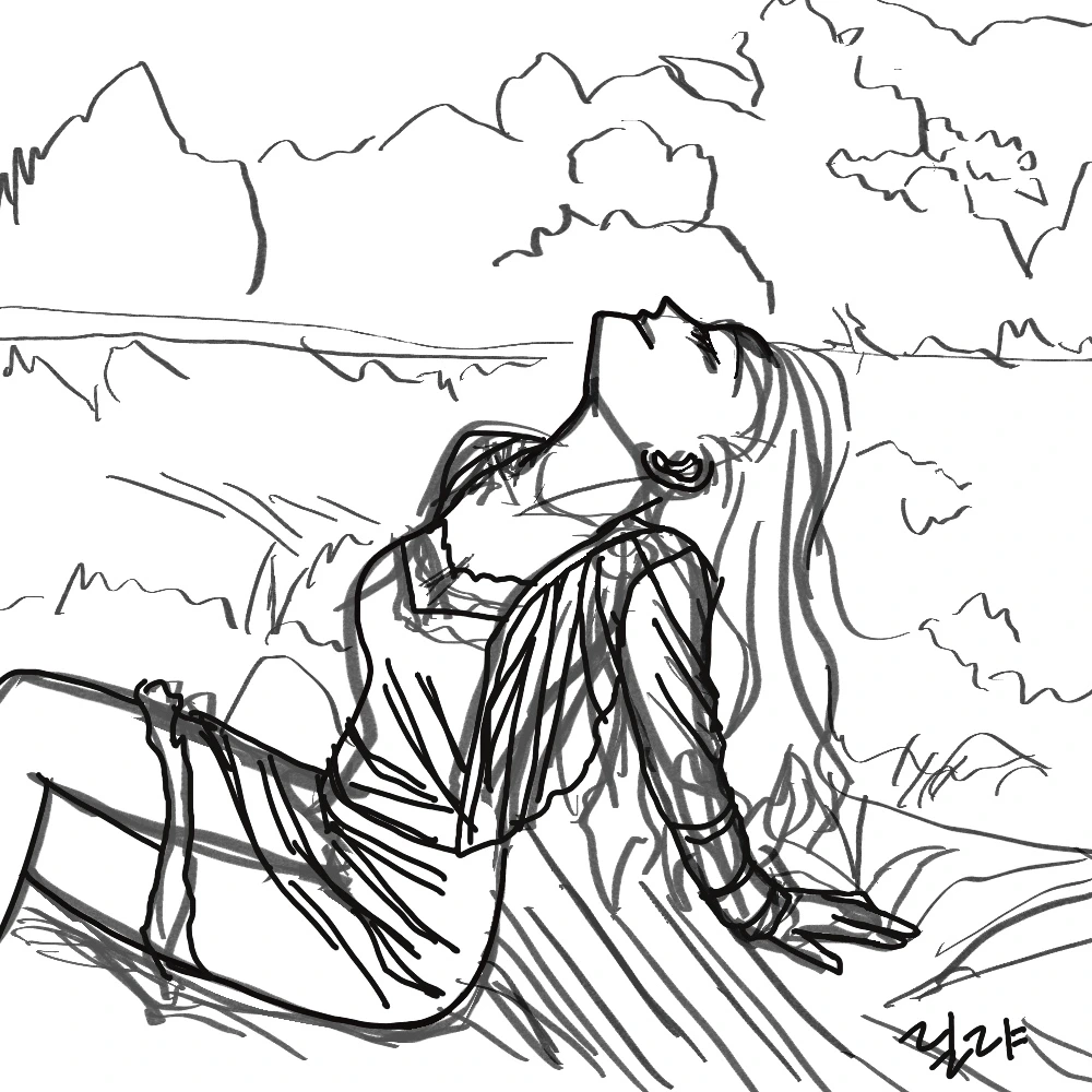 원래는 러프를 그리고 선을 깔끔하게 다시 긋고 있었는데 러프 때 막 드로잉 하던 것에 비해 시간과 에너지를 너무 잡아먹는다는 걸 알게 됐다. 원래 알고 있었던 거 같지만 그동안 잠시 그리는 걸 멈추고 있었기 때문에 잊었던 걸로 보인다. 사진을 모작하는 건데도 인체가 자꾸만 삐꾸나는 것도 느끼고 지금은 세밀하게 그리는 거나 선도 얇게 못 그리겠어서 과감히 포기하고 굵은 선으로 그리고 있다. 그래도 나름대로 더 내 식대로 표현되는 건 마음에 들지만. 그래서 러프로 막 그었던 선을 그대로 쓰기로 했다. 그 위에 색칠하는 중인데 그림이 완성되면 글의 삽화처럼 넣을 생각이었다.