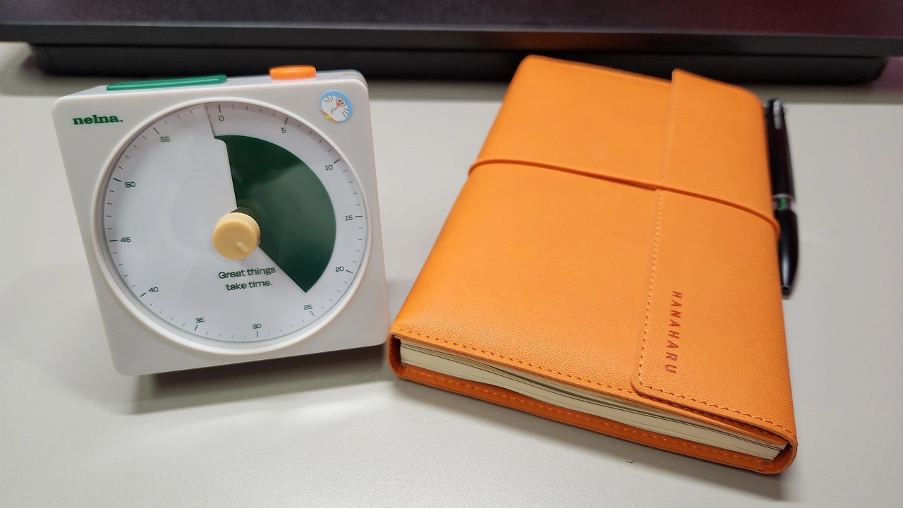 그래서 오늘은 18년 회사생활을 바탕으로, 집중을 위해 내가 시도해 본 방법과 도구를 소개해보려고 한다. 우선, 집중을 위한 방법에는 크게 두 가지가 있다. 셀프컨트롤과 외부 컨트롤. 셀프컨트롤은 쉽게 말해 자기 스스로 자기를 혼내고 달래 가며 집중하게 만드는 방법이다. 먼저 이를 위해 잠시 책상 정리를 한다. 리츄얼의 시작 같은 것이다. 쓰레기, 먹다 남은 음식물 등의 방해 요소를 제거한다. 주의할 점은, 딱 5분 내로 끝내는 것이다. 갑자기 대청소로 들어가면 답이 없다. 이렇게 물리적인 환경을 갖추었다면, 이제 내 정신을 초집중 모드로 바꾼다. 가장 눈에 잘 띄는 곳에 알람 시계를 놓는다. 남은 시간이 시각적으로 한눈에 보이는 타임타이머나, 스마트폰 알람을 추천한다. 아래 사진에서 내가 쓰는 알람시계는, 요즘 핫하다는 '넬나'의 타이머이다. 광고글이 아니다 보니 적극적으로 추천을 못하겠지만, 디자인도 아름답고 stop 기능도 있어 개인적으로 매우 만족하며 사용하고 있다.