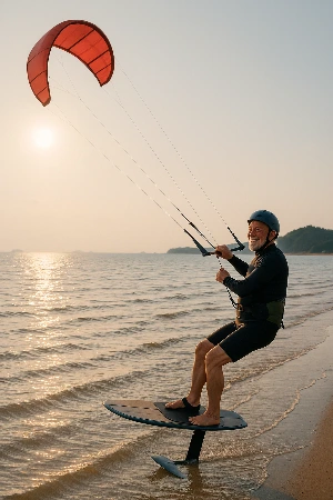 동해 바다에서 서핑하시는 분들은 많이 봤어도, 서해에서 이런 광경을 마주칠 줄 몰랐어요. 그런데 더 놀라운 건, 이걸 즐기시는 분들이 대부분 60대 이상으로 보이는, 시니어라는 사실이었어요. 허리를 꼿꼿하게 세우고 연을 조종하며, 바다 위를 자유롭게 가르고 있었죠.