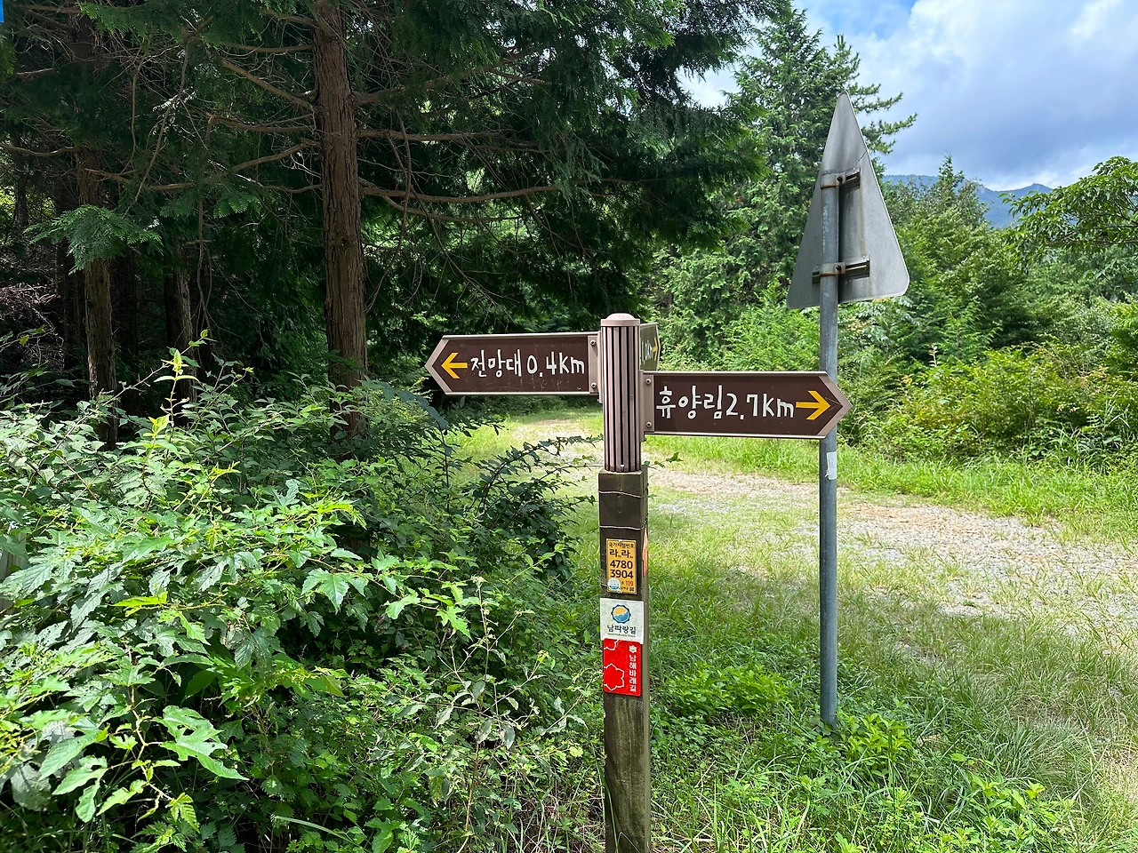 이제 성수기의 열이 한 풀 꺾이고 월요일인지라 휴양림은 한산했다. 대부분의 방문객들은 등산로 초입부에 있는 야영캠핑장에서 텐트를 치고 여유로운 시간을 보내고 있었다. 그래서인지 등산로에는 정말 오르기 시작할 때부터 하산할 때까지 나밖에 없었다. 정상에 이르렀을 때 차를 가지고 온 산림청 직원분들로 보이는 두 분을 제외하면 나는 등산객을 한 명도 마주치지 못했다.