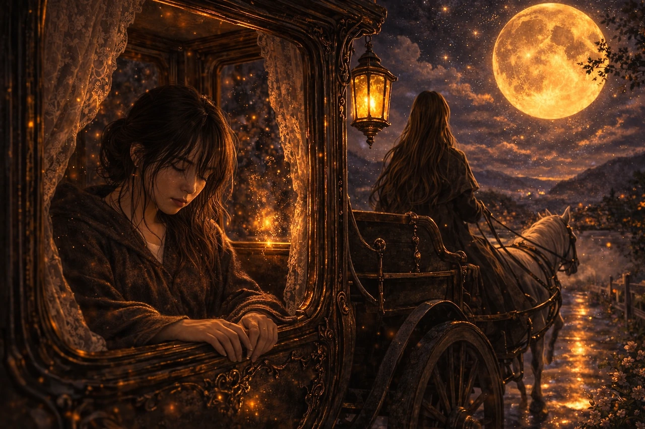 꿈마차는 고요한 밤길을 천천히 달립니다.