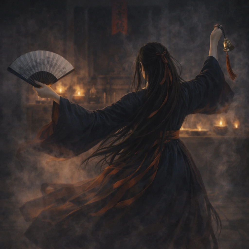 그 한마디가 떨어지자 신당 안의 불빛이 일제히 눌리듯 낮아졌고, 향 연기는 아래로 흘러내리듯 가라앉았다.