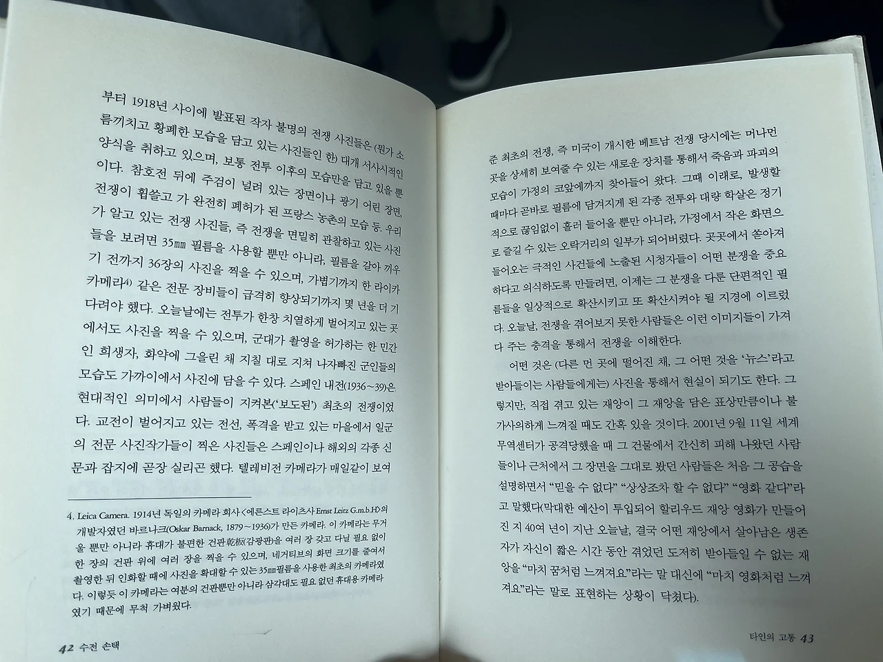 모든 사진은 메멘토 모리다. 사진을 찍는다는 것은 다른 사람의 죽음, 약점, 변질에 동참하는 것이다. 사진은 바로 그런 순간을 도려내 동결하기 때문에 모든 것을 가차 없이 녹여버리며 흘러가는 시간을 증언해 준다.