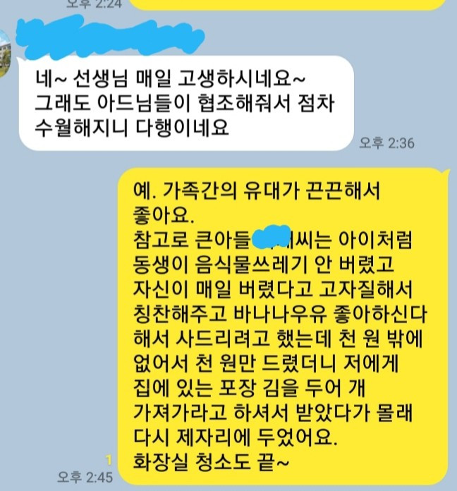 결국 뮤즈의 돌봄은 뮤즈의 두 아들 식단 쪽으로 비중이 커졌다.