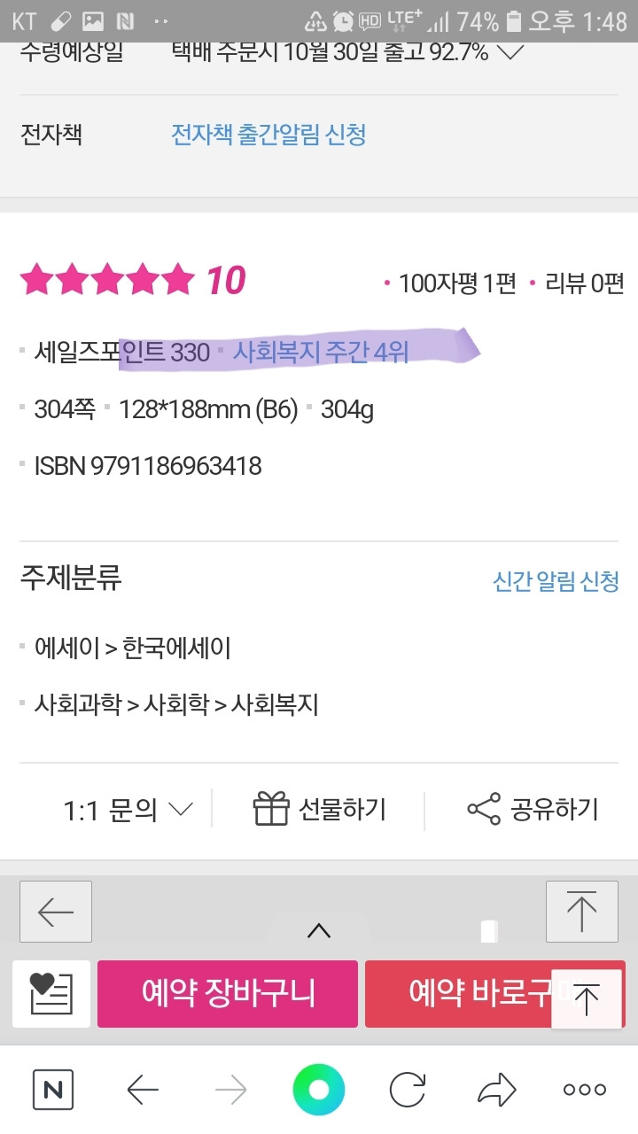 10월 23일 #나는신들의요양보호사입니다는 알라딘 사회복지 주간 32위였는데 25일인 오늘 확인해 보니 4위에요. 좋은 예감. 모두 친구들 덕분입니다.