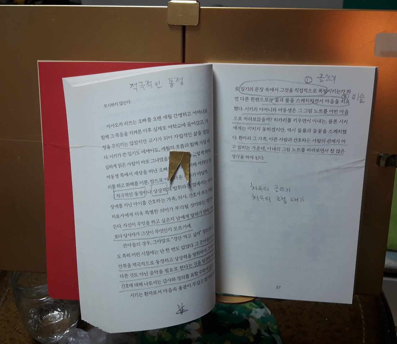 꼬마가 잠들자 잠자리에서 빠져나와 오에 겐자부로의 '회복하는 가족'을 읽는다. 오에는 56쪽에서 이렇게 말하고 있다. 적극적인 동정이나 상상력의 발휘라는 점에서는 지적장애를 지닌 아이를 간호하는 가족, 의사, 간호사 또는 재활치료사에게 더욱 특별한 의미가 부각될 것이라는 생각이 든다. 자신이 무엇을 하고 싶은지 남에게 말하기 전에, 무엇보다 당사자가 그것이 무엇인지 모르기에.