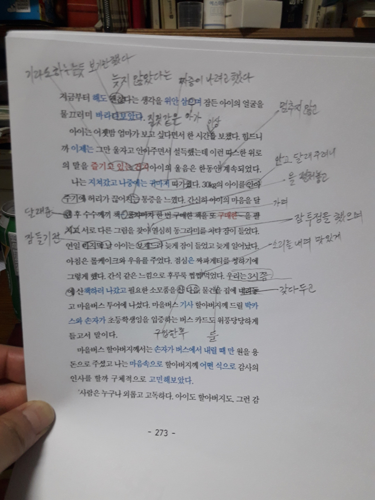 엄마의 교정지는 고칠 게 많네요. 기념으로 가지고 있을 겁니다. 노인이 아직 정정하다는 뜻이니까요.