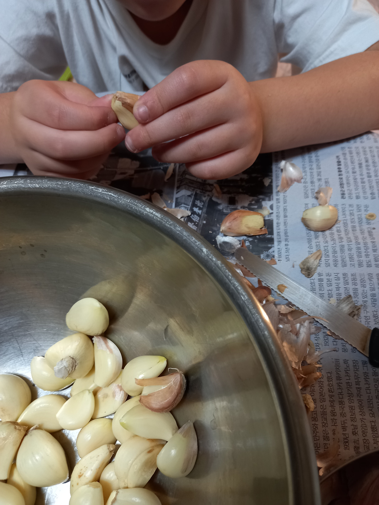 우리는 침대에 나란히 걸터앉아 햇볕에 잘 말린 마늘껍질을 30분 이상 몰입해서 깠다. 마늘을 까는 동안 정명이가 네다섯 살쯤에도 고모를 도와 마늘을 아주 잘 깠다고 들려주었다.
