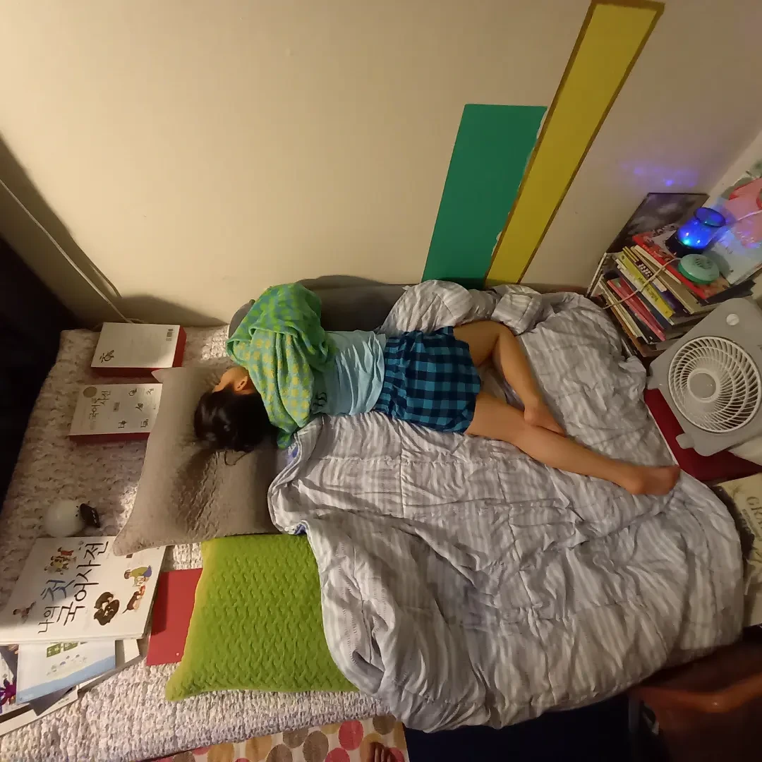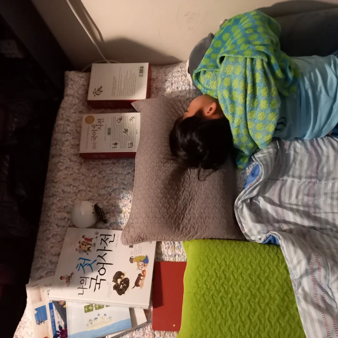 새로 산 어린이용 국어사전을 죽 늘어놓고 아이는 침대에서 잠이 들었다.