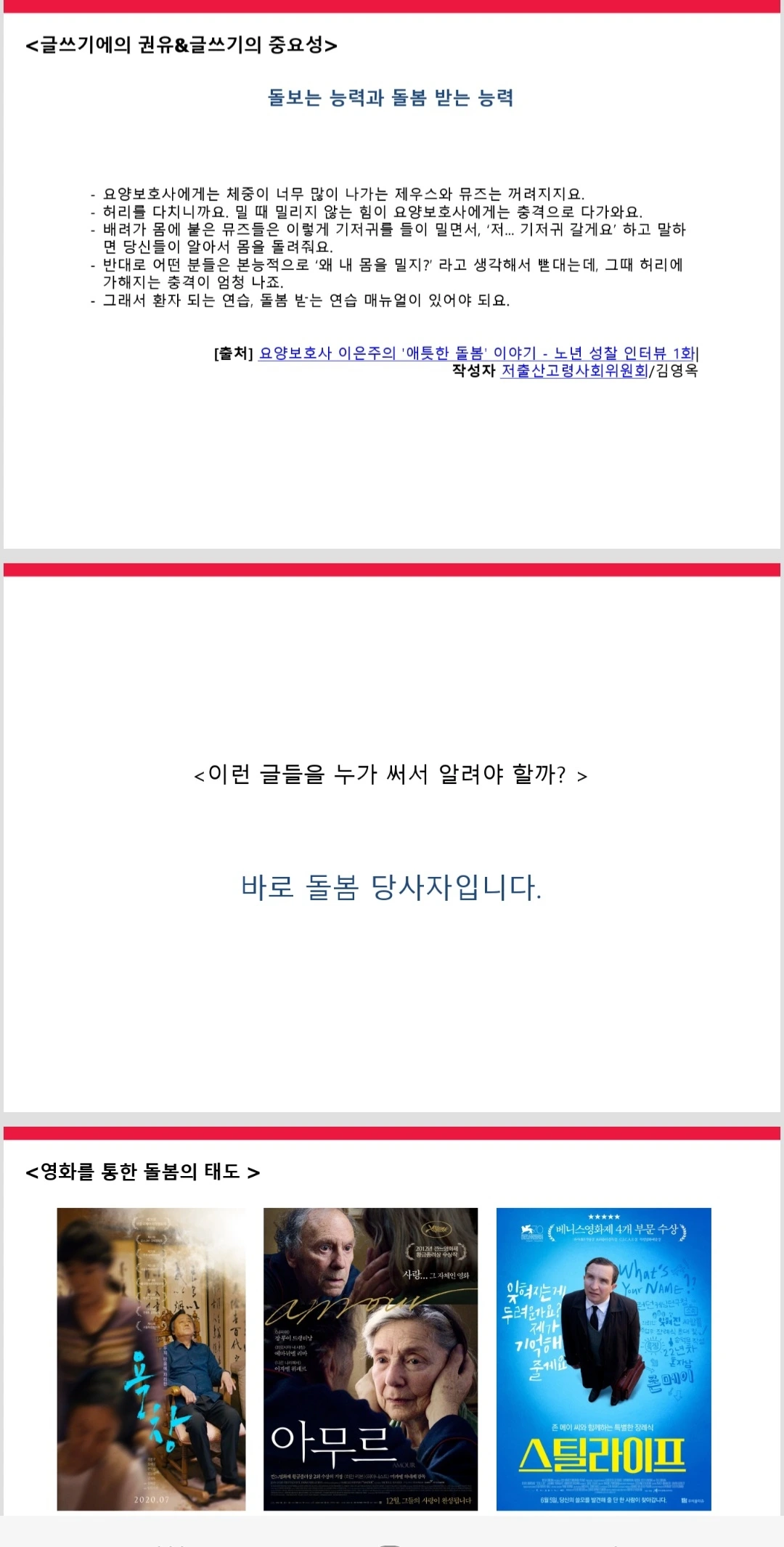 <돌봄의 태도>를 보여준 영화를 소개합니다.