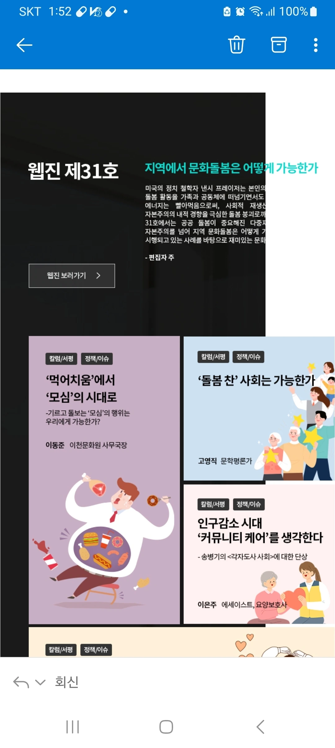 커뮤니티 케어를 생각하다 ‘누구나 말하지만 아무도 모르는 정책’이라는 소제목부터가 의미심장하다. 송병기는 ‘커뮤니티 케어’ 정책포럼에 참가한 내용을 소개한다. 과연 ‘커뮤니티 케어’란 무엇인가, 패널들이 정책 담당 공무원에게 물었다. “포용적 복지국가로 향하는 담대한 걸음입니다.” 고개를 끄덕였지만 아무도 이해하지는 못한 듯 다시 물었다. “커뮤니티 케어란 게 뭡니까?” “우리 국민들이 지역 사회에서 통합적으로 돌봄을 받을 수 있도록 돕는 정책입니다”라는 말이 돌아왔다. 영어 단어 커뮤니티(community)는 지역사회로, 케어(care)는 통합적 돌봄으로 번역한 듯하다고 저자는 말한다.
